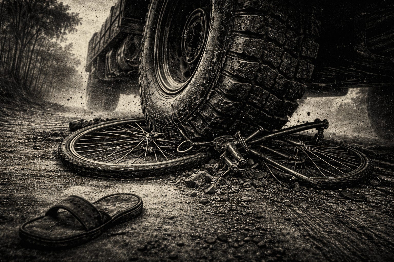 A transport rolled over two people on bicycles.